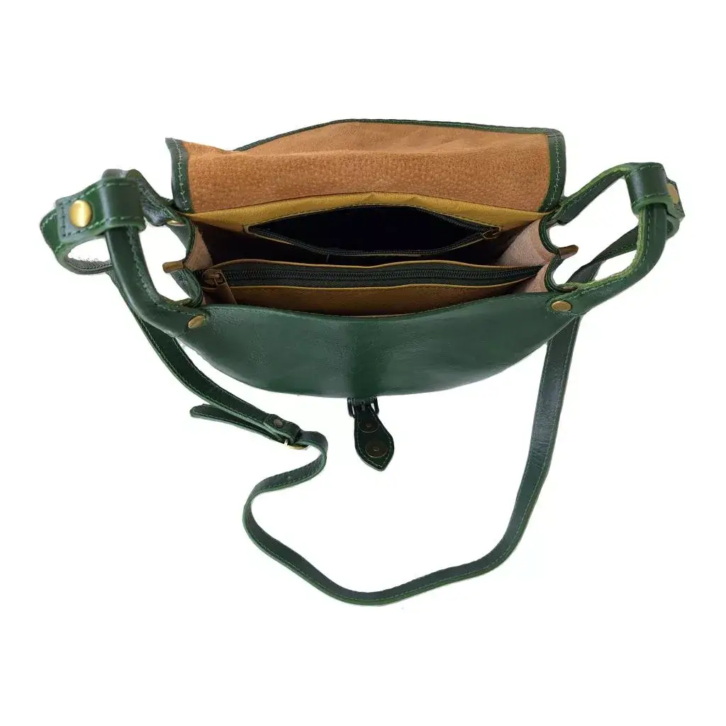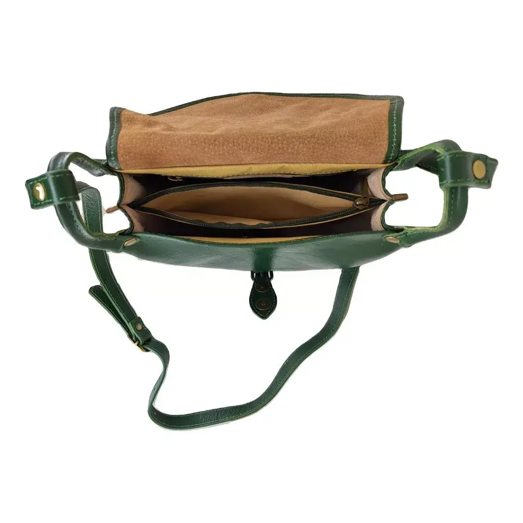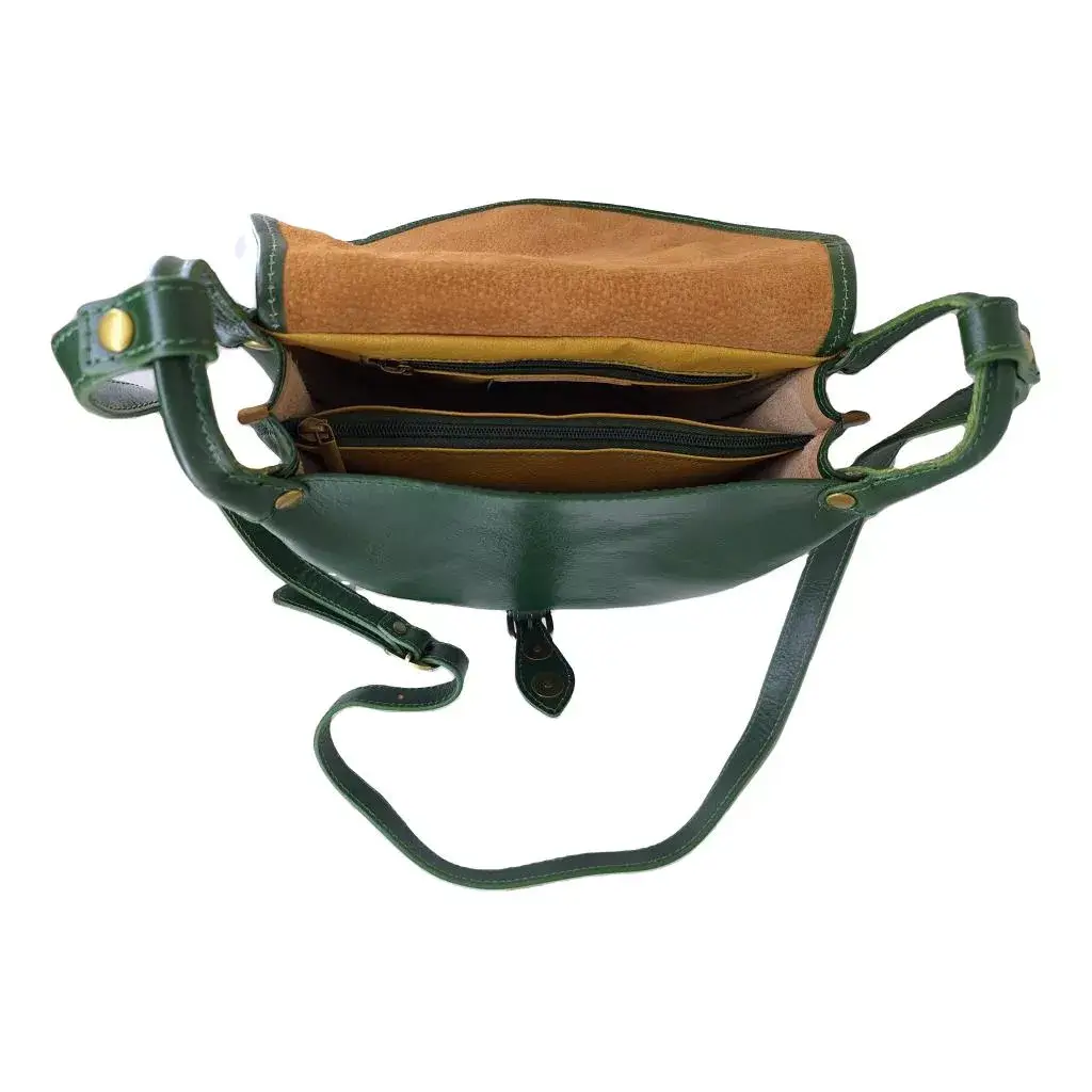 Kožená kabelka přes rameno Amelia 220203 je elegantní crossbody model vyrobený z kvalitní, pevné a odolné přírodní kůže. Díky kompaktním rozměrům a promyšlenému vnitřnímu členění je ideální na krátké výlety, procházky i každodenní nošení. Tento model nabízíme v elegantní zelené barvě, která podtrhuje nadčasový vzhled kabelky.