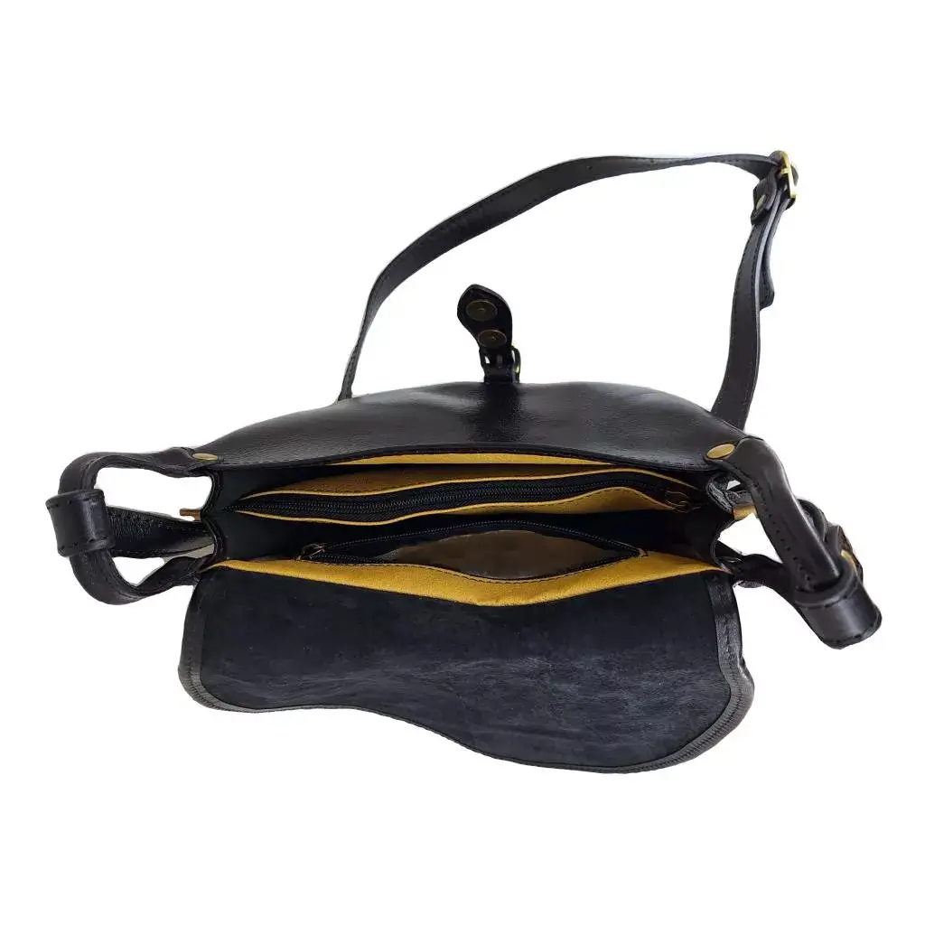 Kožená kabelka přes rameno Amelia 220208 je elegantní crossbody model vyrobený z kvalitní, pevné a odolné přírodní kůže. Díky kompaktním rozměrům a promyšlenému vnitřnímu členění je ideální na krátké výlety, procházky i každodenní nošení. Tento model nabízíme v elegantní černé barvě, která podtrhuje nadčasový vzhled kabelky.