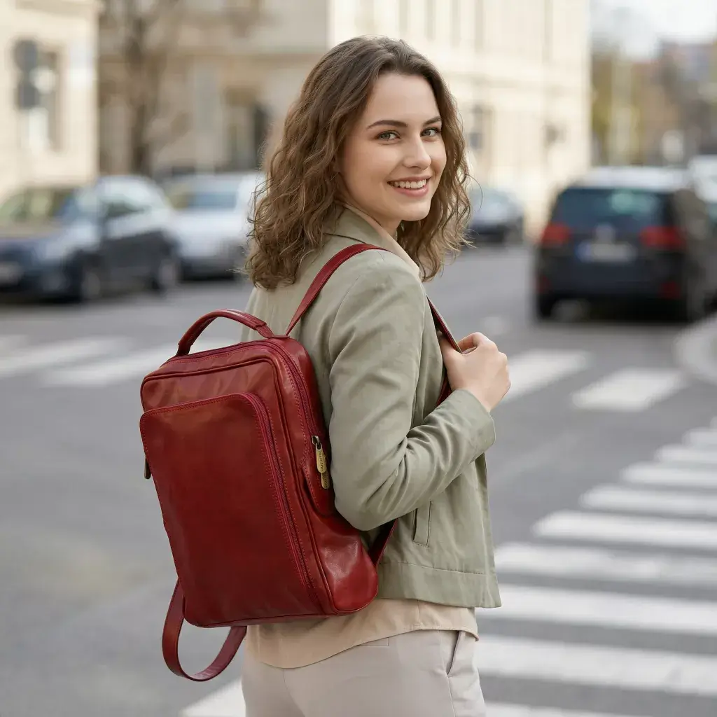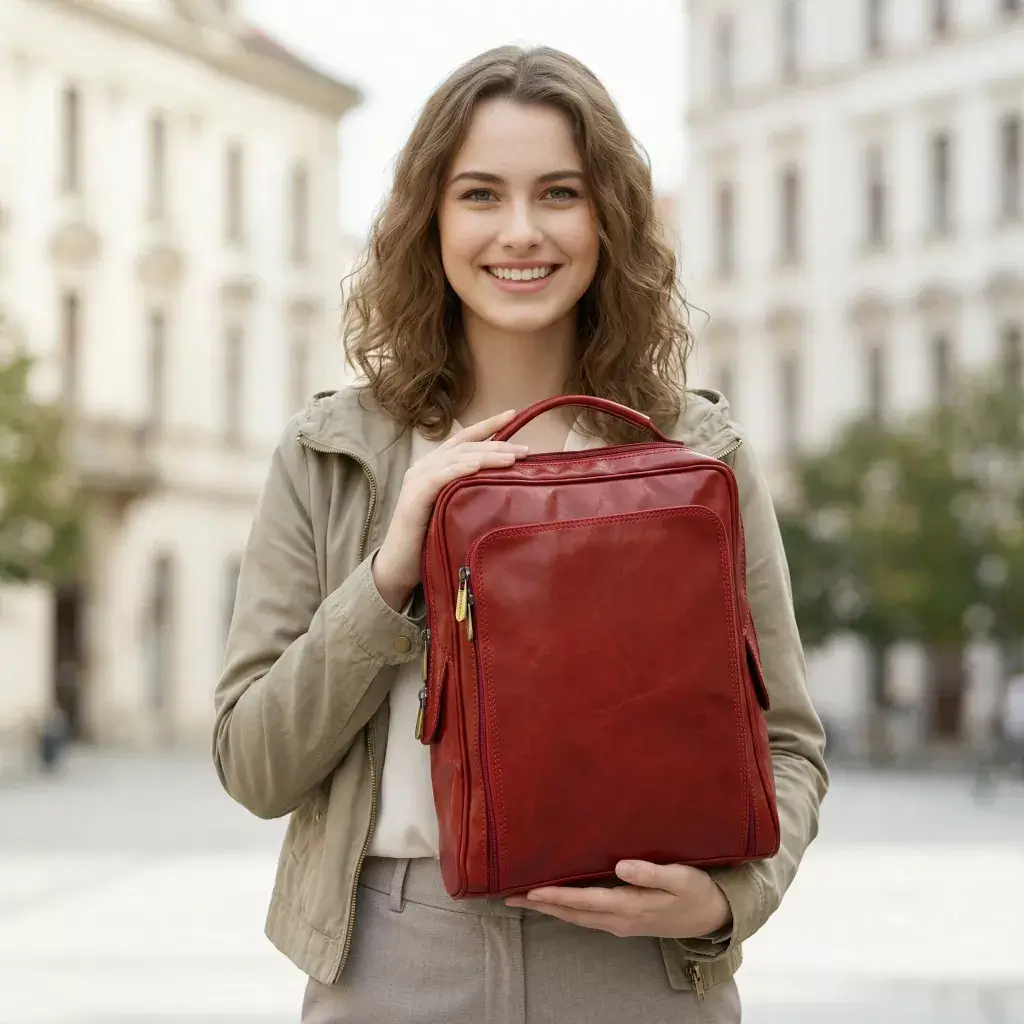 Dámský kožený batoh Marta 320804 spojuje elegantní vzhled, kvalitní přírodní kůži a praktické vnitřní uspořádání. Je ideální pro každodenní nošení – do práce, do města i na volný čas. Vyroben je z prémiové hladké přírodní kůže, která je odolná, příjemná na dotek a krásně drží tvar. Tento model nabízíme v moderní červené barvě, která dodává outfitu svěží a nadčasový vzhled.