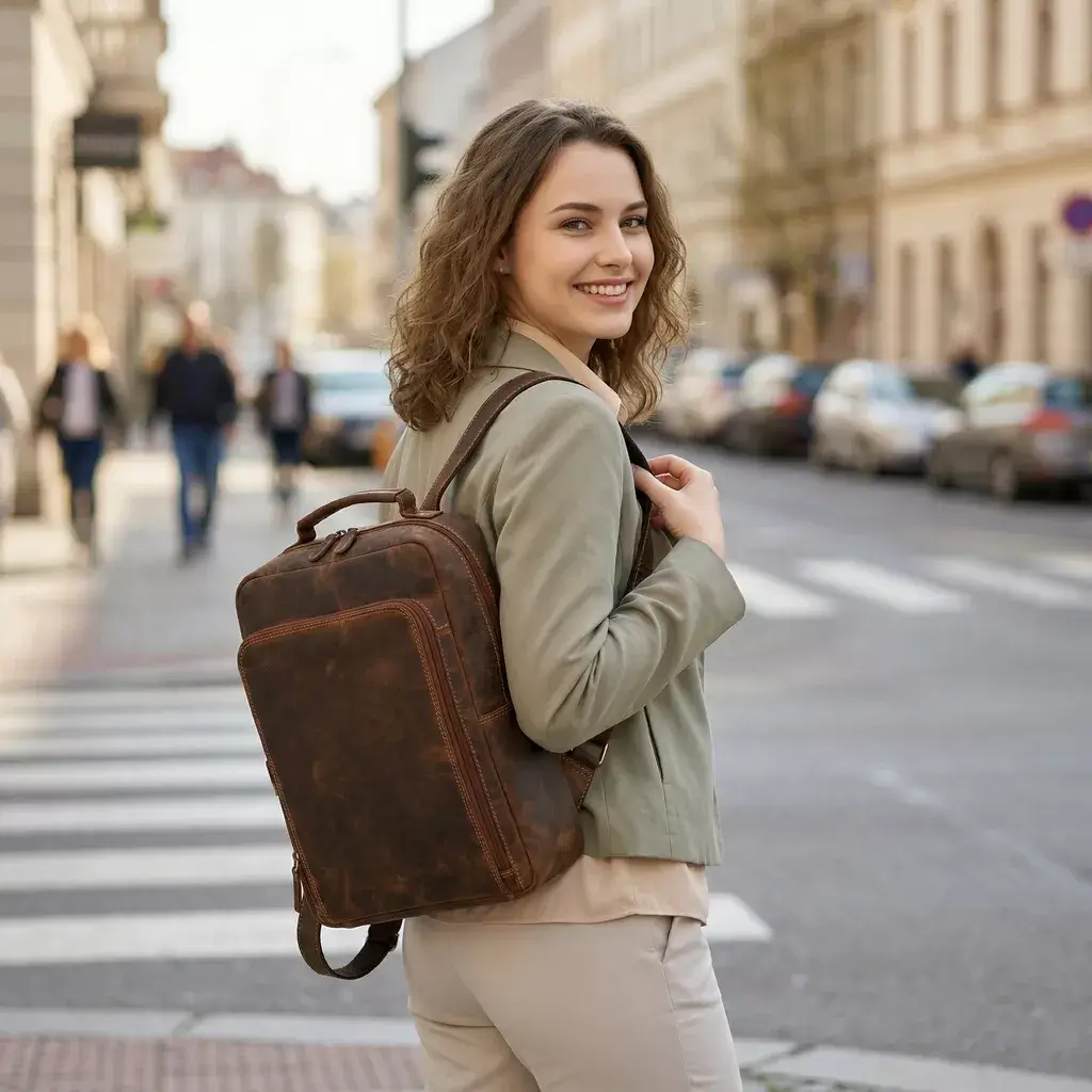 Nastavitelné ramenní popruhy umožňují snadné přizpůsobení vaší postavě i stylu nošení. Díky ergonomickému tvaru a kvalitní kůži je batoh pohodlný i při celodenním používání.