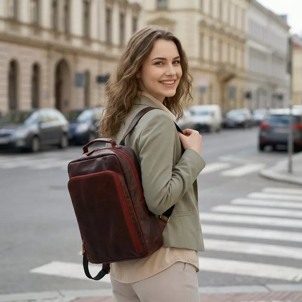 Nastavitelné ramenní popruhy umožňují snadné přizpůsobení vaší postavě i stylu nošení. Díky ergonomickému tvaru a kvalitní kůži je batoh pohodlný i při celodenním používání.