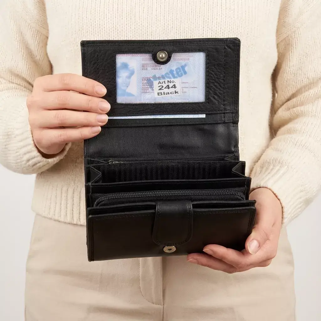 Dámské kožené peněžence Megan 24408 dominuje zapínací na patentek (druk) klopa.