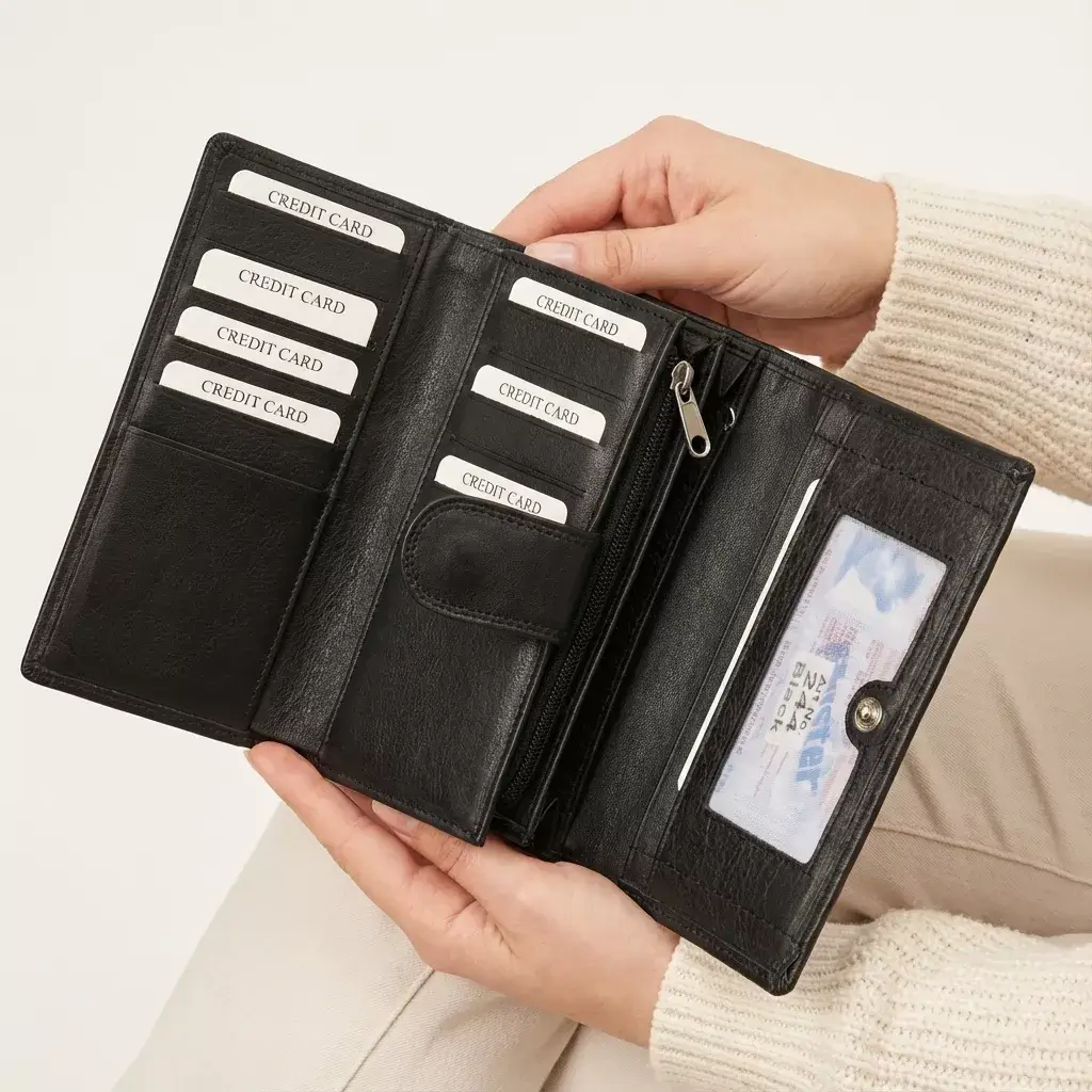 - 12 slotů na karty pro bezpečné uložení vašich debetních, kreditních nebo věrnostních karet,