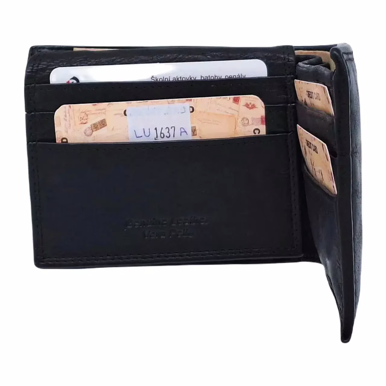 Pánská kožená peněženka Harry LU1637A08 o rozměrech 12 x 9 cm je situována na šířku. Vyrobena je z kvalitní měkké kůže a je velmi příjemná do ruky.