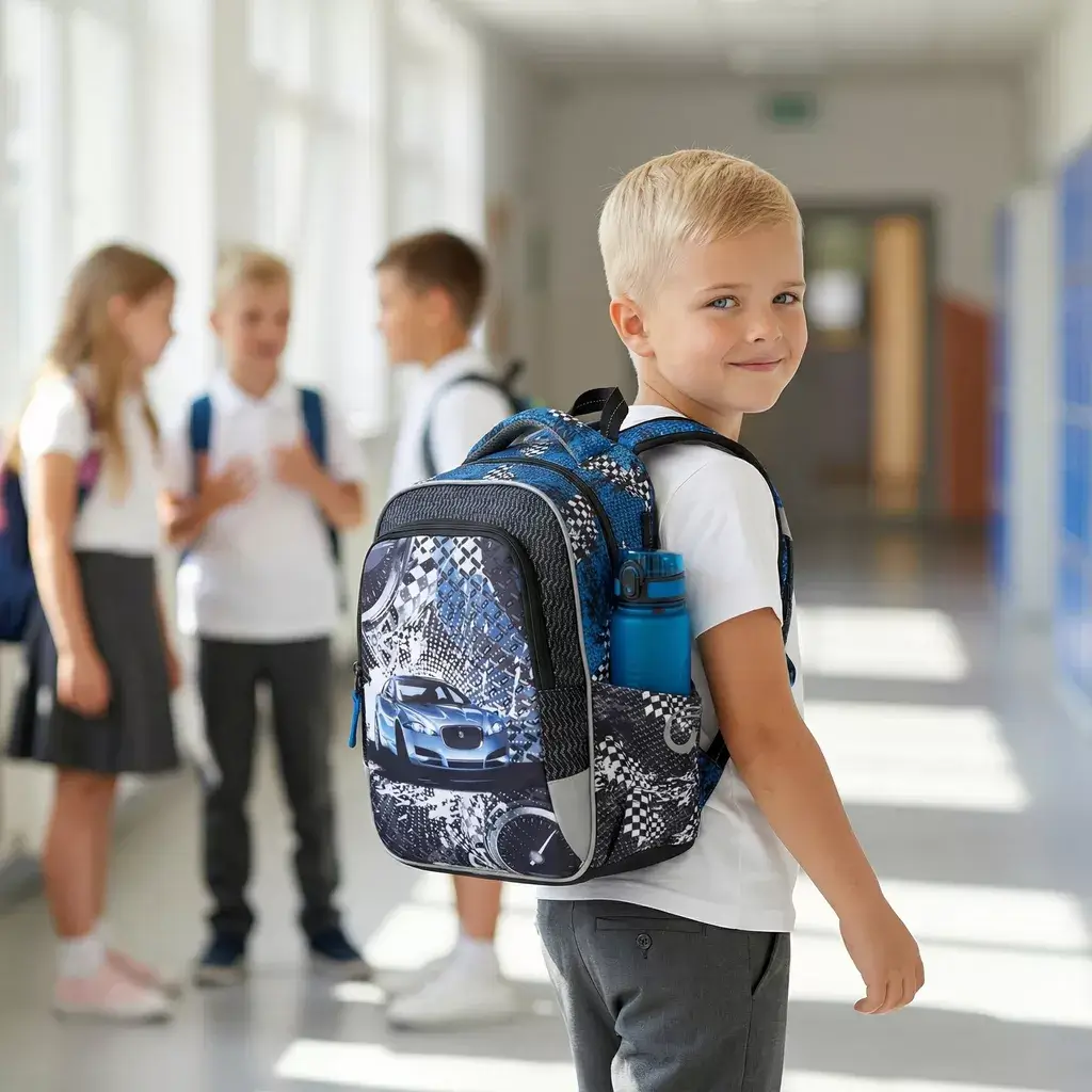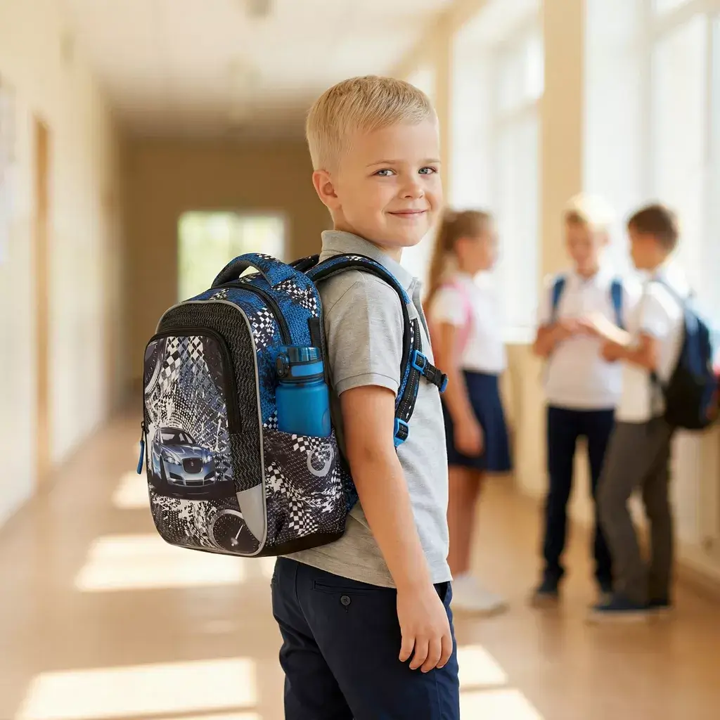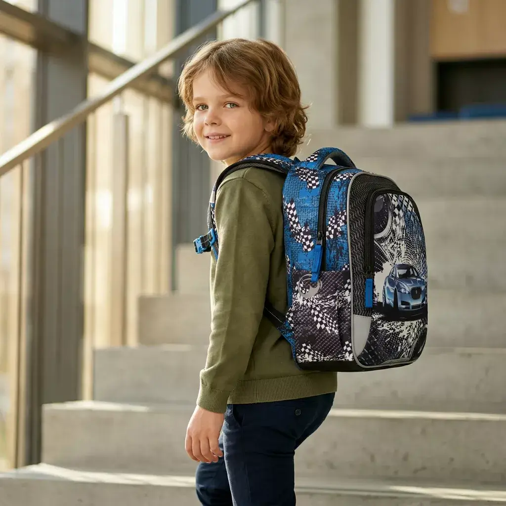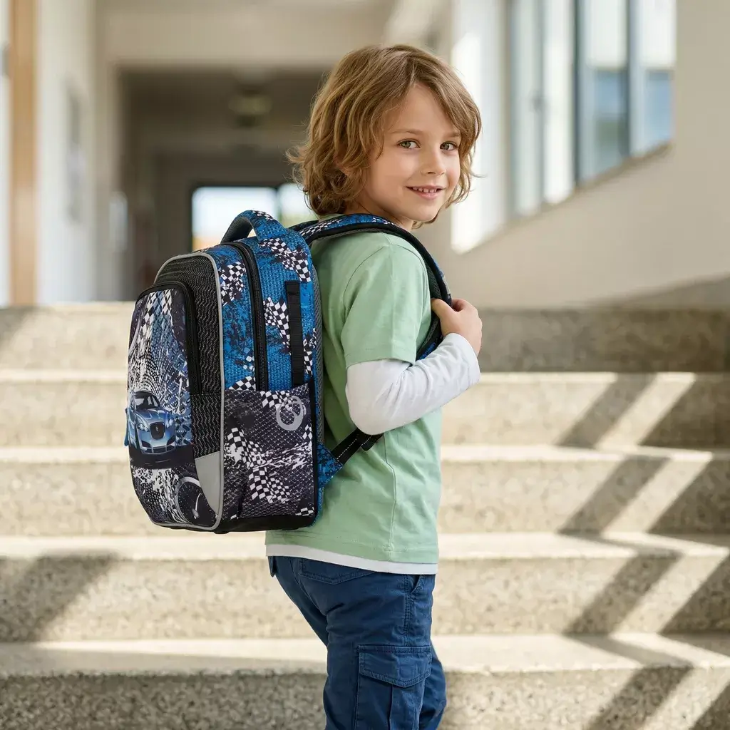 Předškolní batoh Bagmaster MINI 24 B s autem je lehký a ergonomický batůžek určený pro všechny malé závodníky s výškou 110–115 cm. Díky hmotnosti pouhých 0,46 kg nezatěžuje záda a skvěle se hodí do školky, na kroužky, výlety i každodenní nošení. Je ideální pro malé děti, které si začínají nosit své první věci samy.