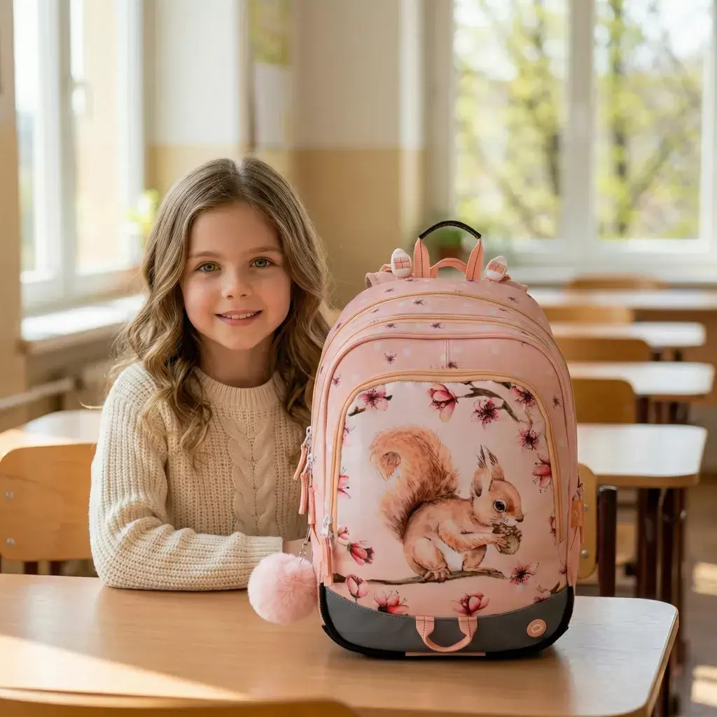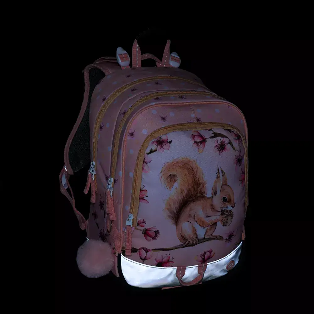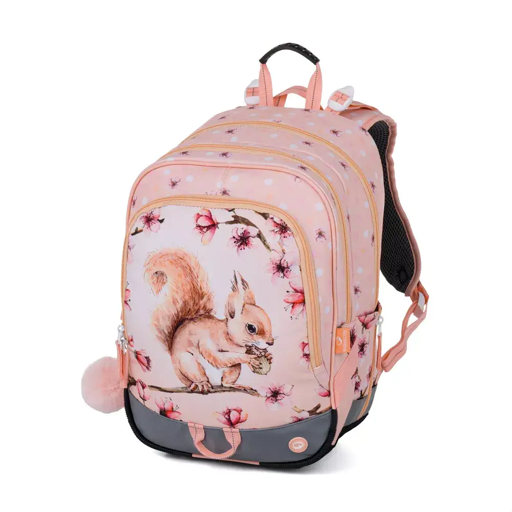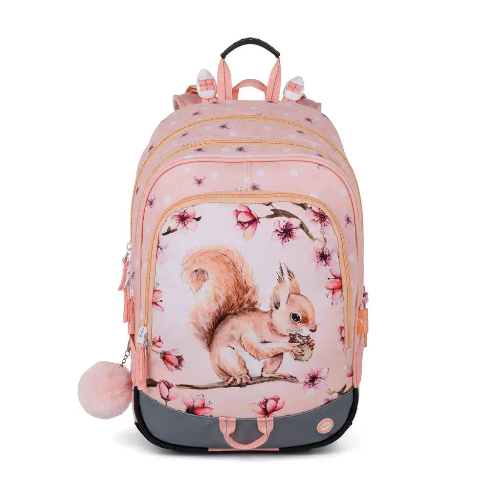Školní batoh Bagmaster ALFA 26 A – veverka je extra lehký tříkomorový batoh určený pro školačky v 1.–3. třídě základní školy. Díky nízké hmotnosti, anatomicky tvarovaným zádům a kvalitnímu zpracování je ideální pro děti s drobnější postavou. Motiv roztomilé veverky navíc potěší každou malou slečnu.