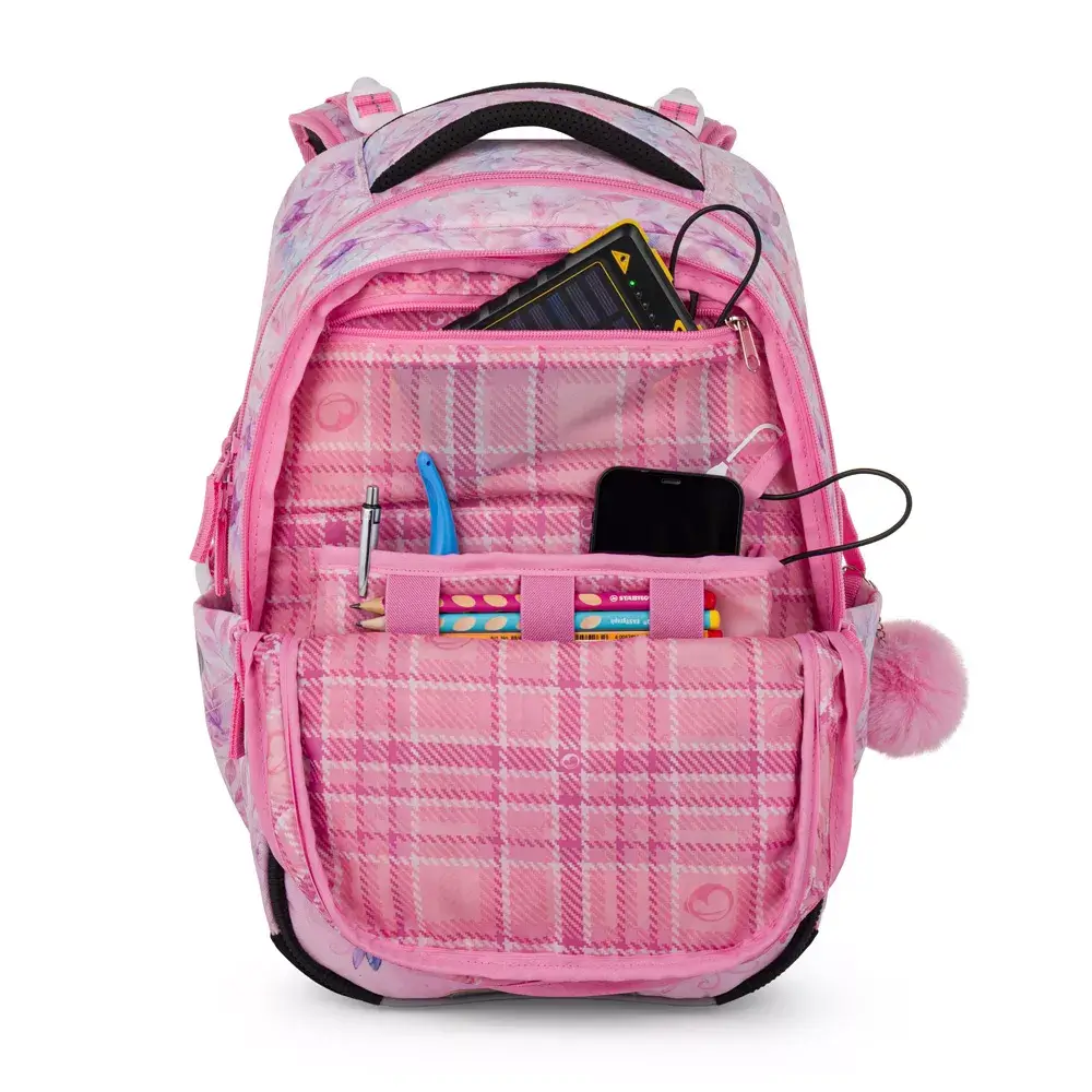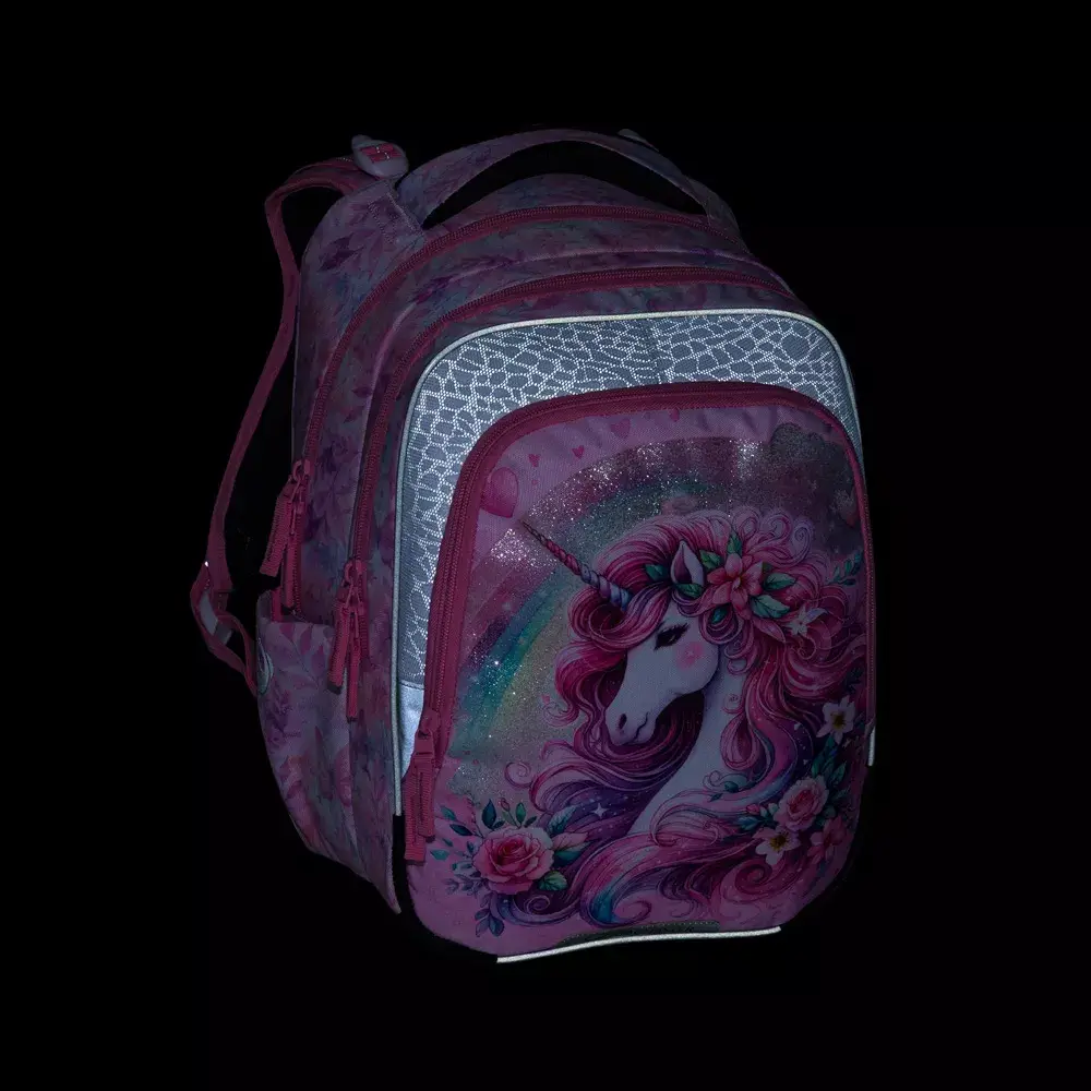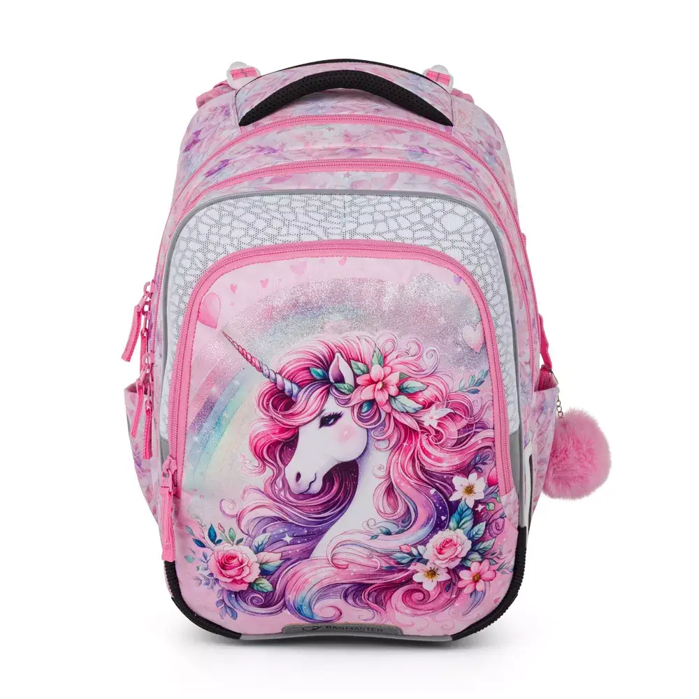 Školní batoh Bagmaster BETA 26 B – jednorožec je lehký tříkomorový batoh navržený pro děti v 1.–3. třídě základní školy. Díky nízké hmotnosti, anatomicky tvarovaným zádům a chytrému uspořádání patří mezi nejpohodlnější a nejbezpečnější školní batohy pro malé školačky. Roztomilý motiv jednorožce potěší každé dítě, které miluje barvy a fantazii.