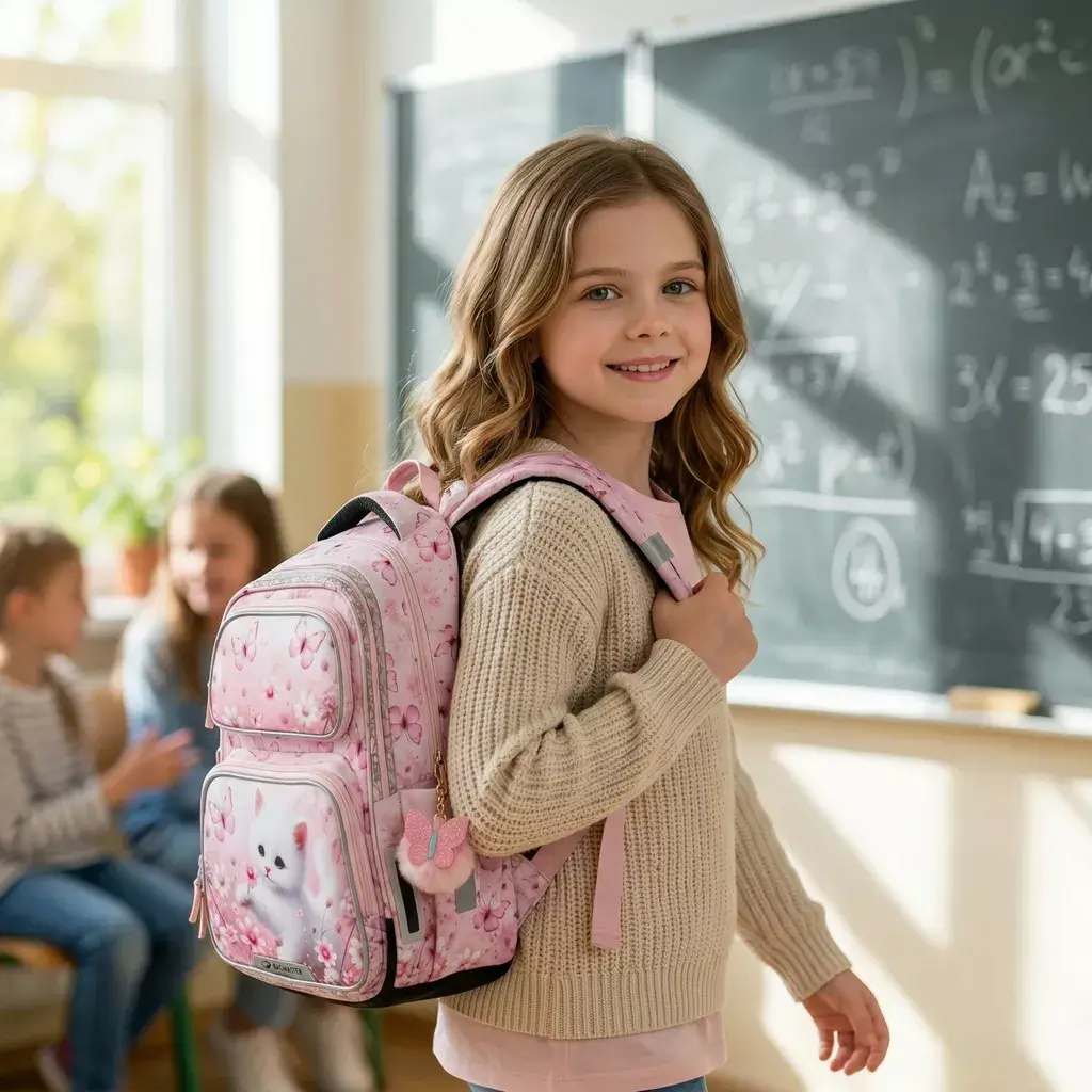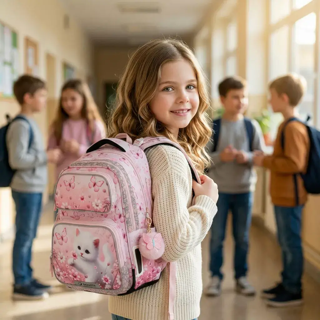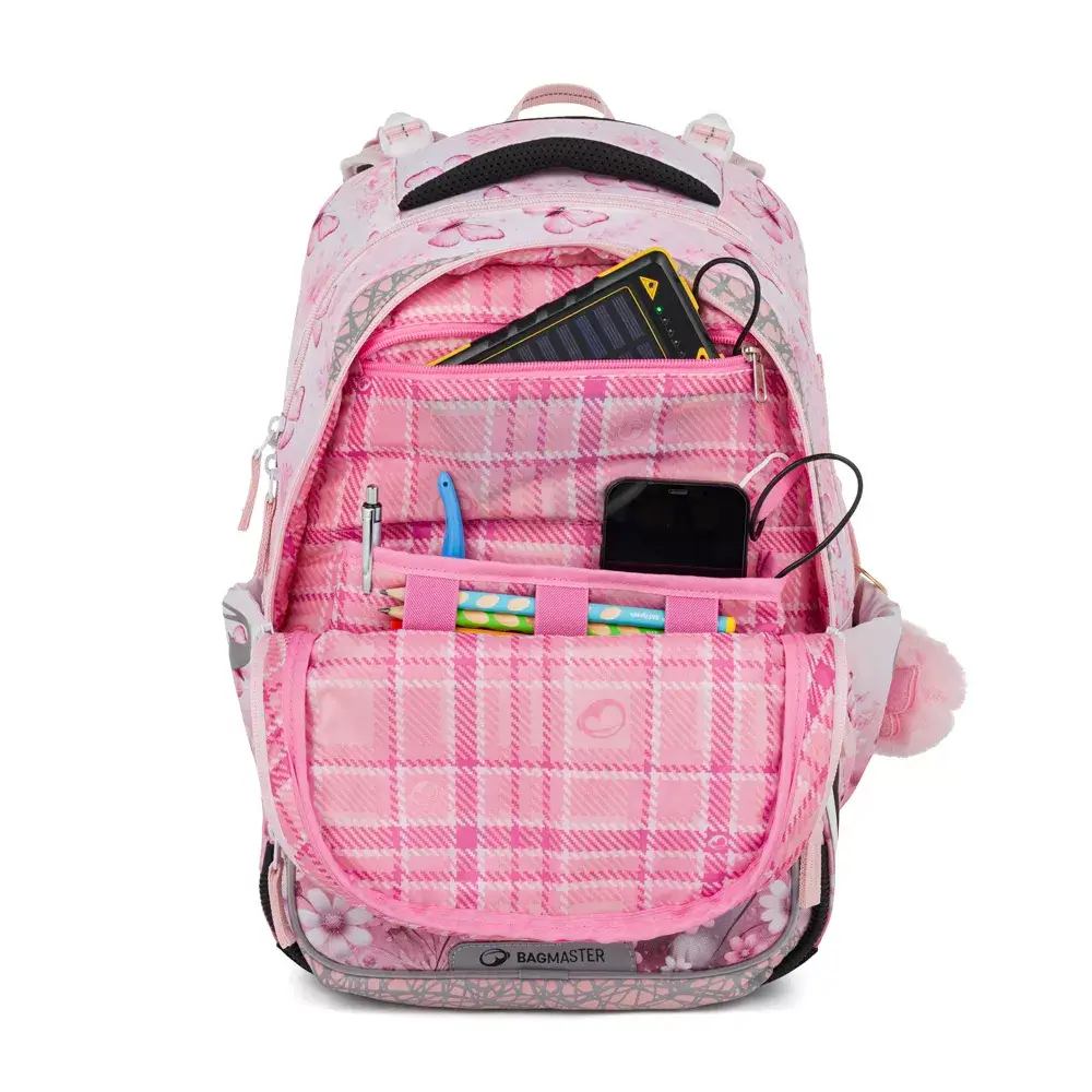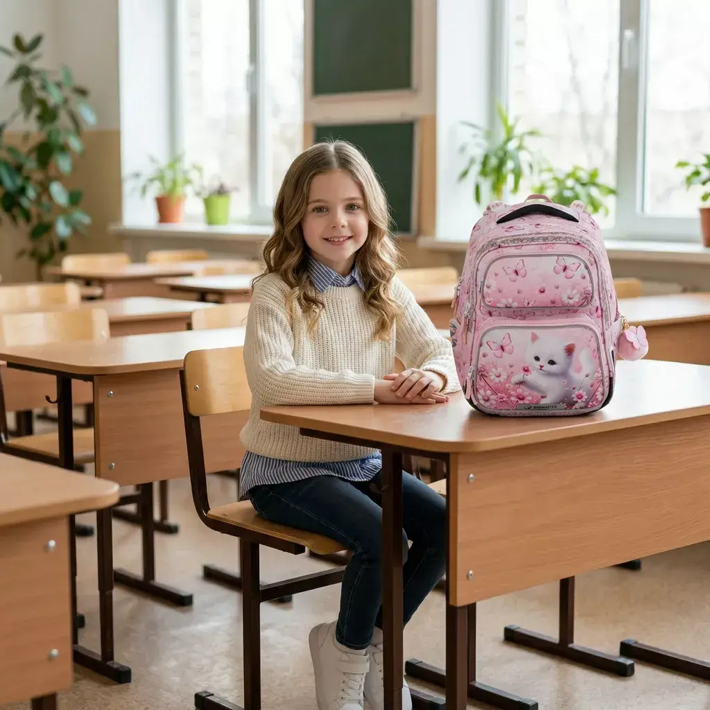 Školní batoh Bagmaster DOPI 26 A – kočička je lehký dvoukomorový batoh navržený speciálně pro drobné školačky v 1.–3. třídě základní školy. Díky nízké hmotnosti, ergonomickému zádovému systému a bezpečnostním prvkům je ideální volbou pro každodenní nošení. Roztomilý motiv kočičky navíc potěší každou malou milovnici zvířátek.
