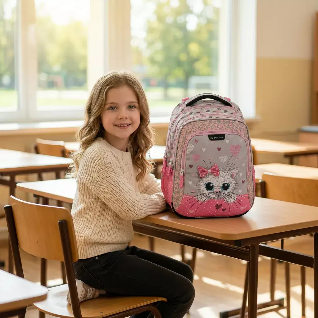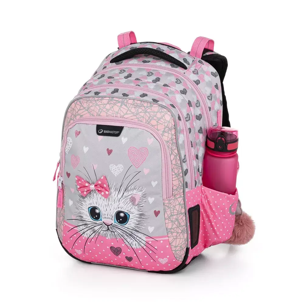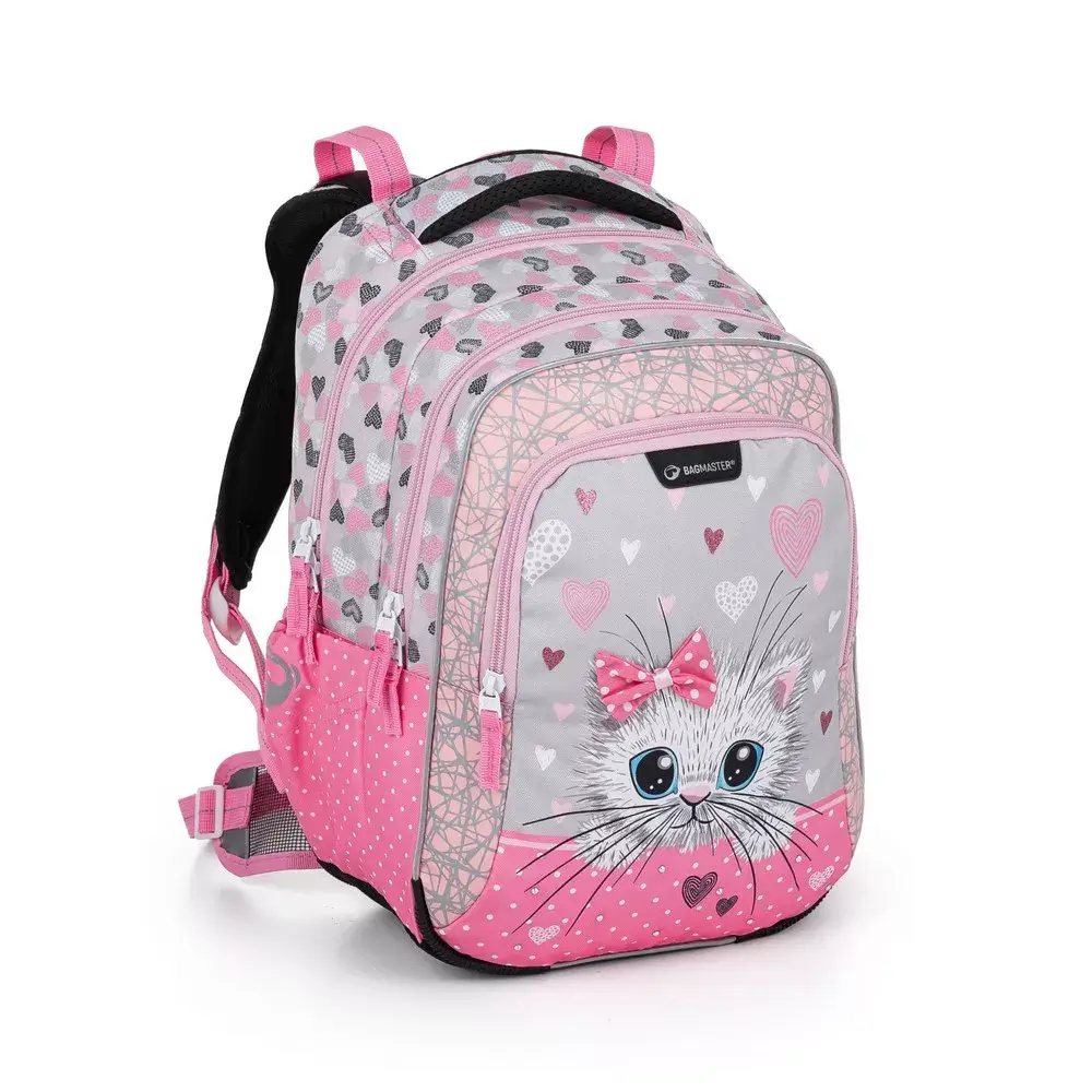 Školní batoh Bagmaster LUMI 22 A – bílá kočka s mašli (1.–3.třída)