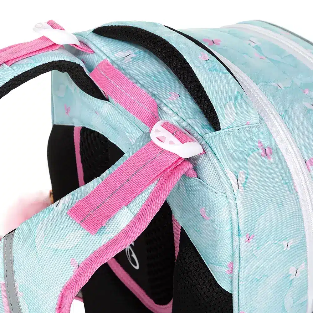 - Nastavitelný hrudní pás pro stabilitu při chůzi.