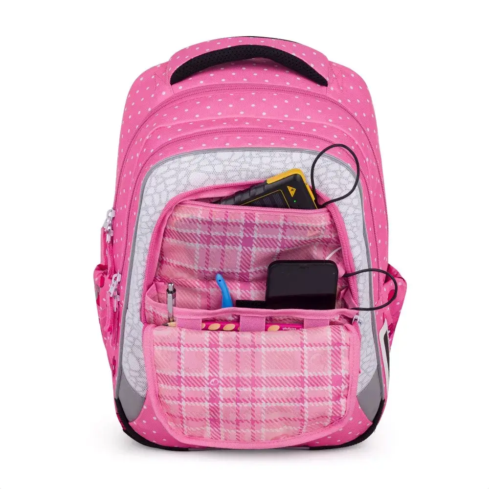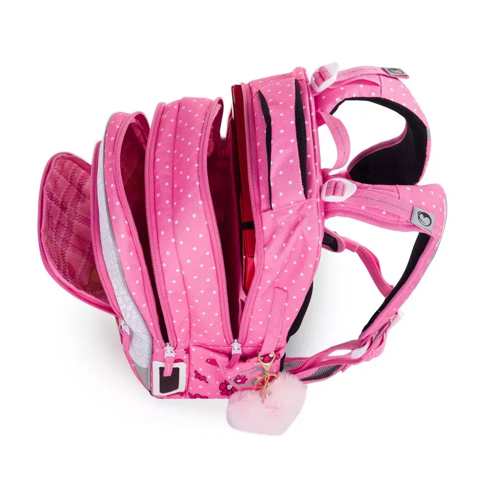 - 3 komory – hlavní komora s kompresní kapsou pro nejtěžší učebnice a desky A4.