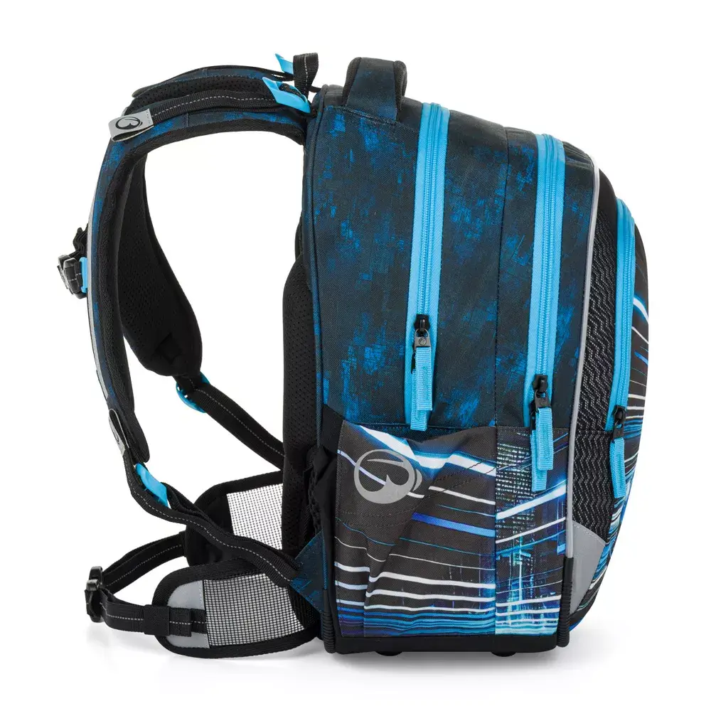 - 3 komory – hlavní komora s kompresní kapsou pro nejtěžší učebnice a desky A4.