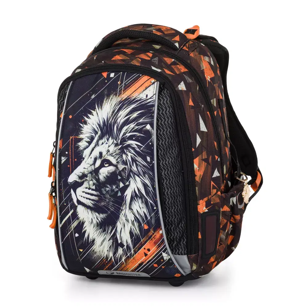 Lehký ergonomický školní batoh Bagmaster VEGA 26 A s motivem lva, vhodný pro děti v 1.–3. třídě.