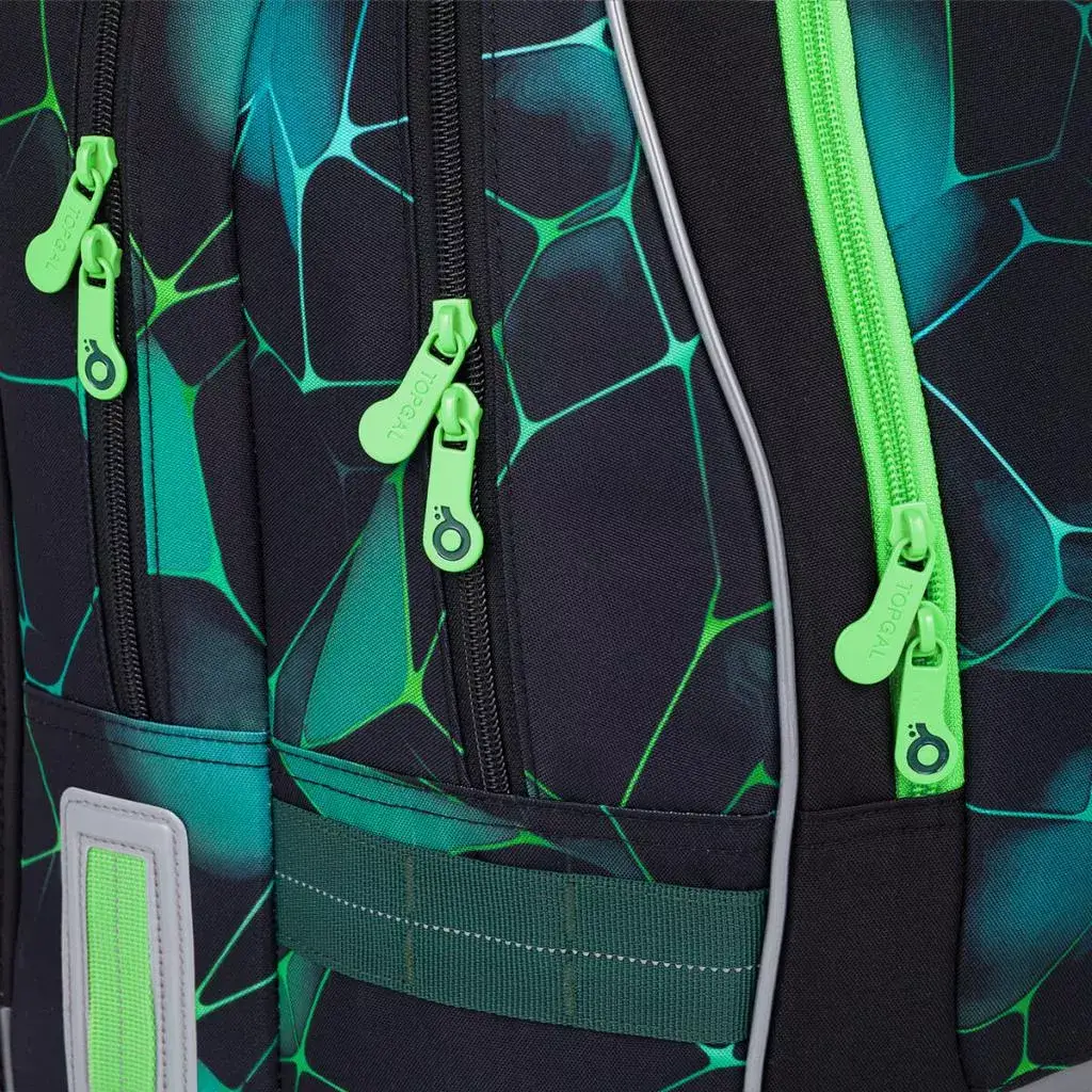 - Konstrukce: Dvoukomorový batoh Topgal CODA 25019 s velkou přední kapsou a pevnou, anatomicky tvarovanou zádovou částí s lehkou hliníkovou výztuhou.