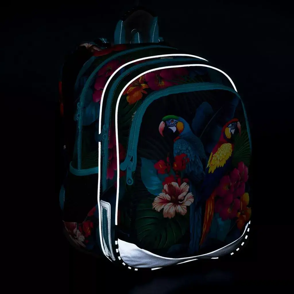 - Bezpečnost: Batoh Topgal ELLY 24004 je vybaven reflexními prvky na čele, bocích a ramenních popruzích pro lepší viditelnost.