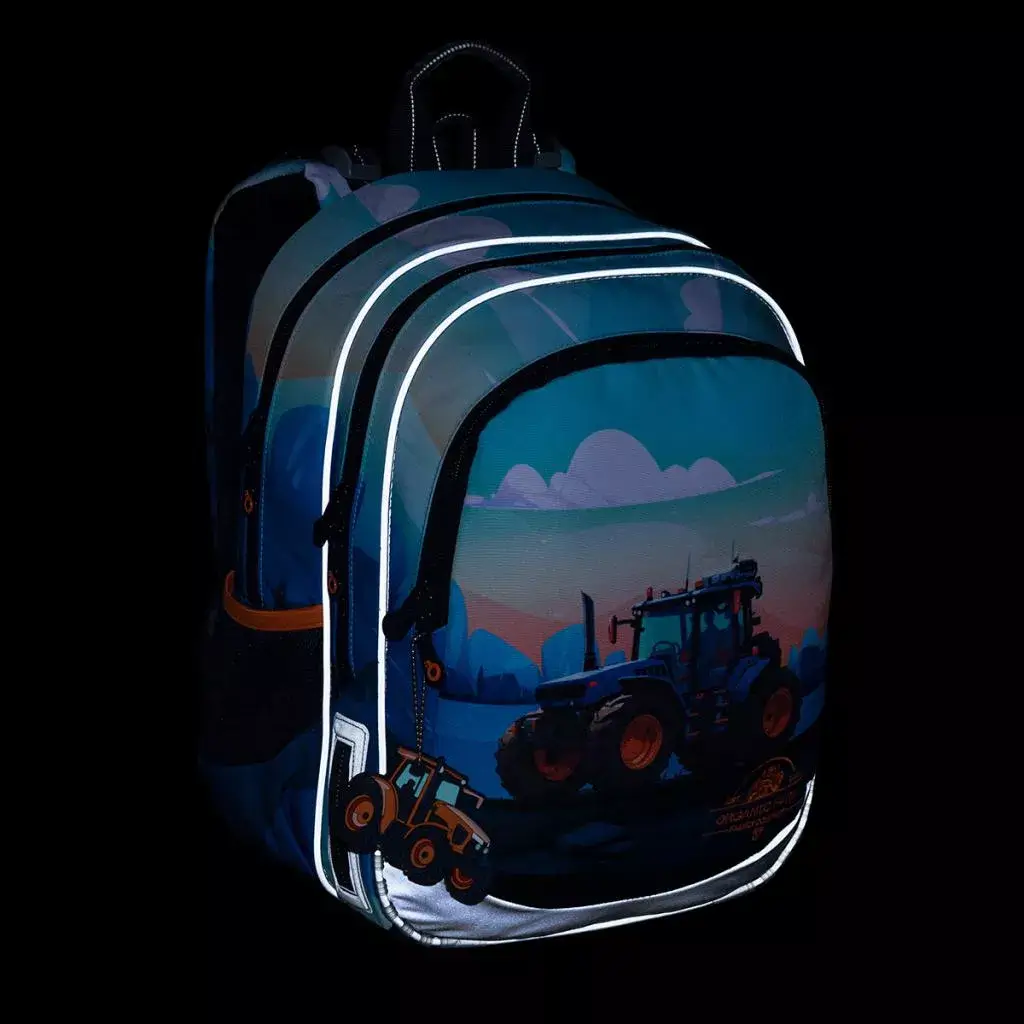 - Konstrukce: Pevná lisovaná záda, dvě objemné hlavní komory a jedna hluboká přední kapsa.