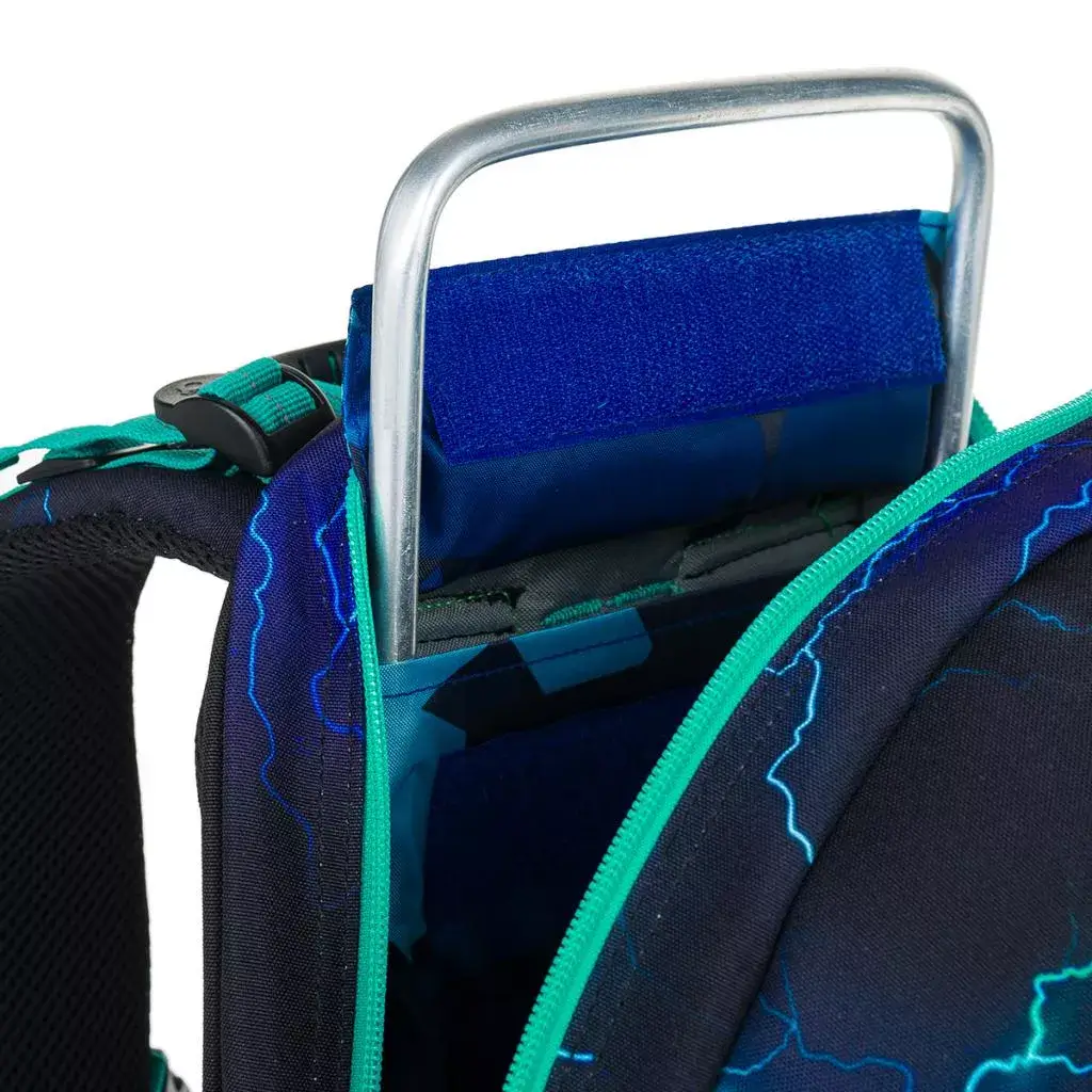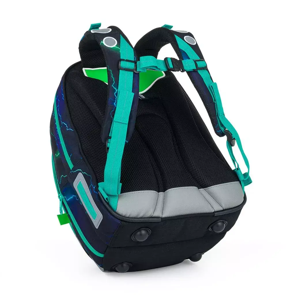 - Zádový systém: Pevná, anatomicky tvarovaná záda s lehkou hliníkovou výztuhou pro podporu proudění vzduchu.
