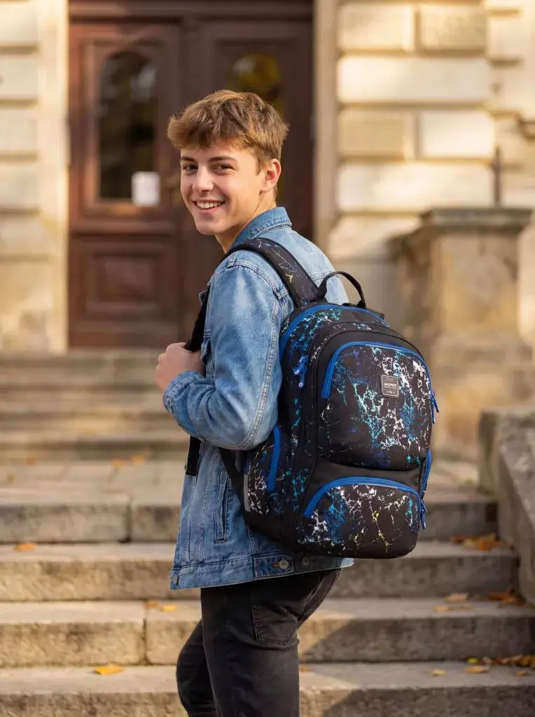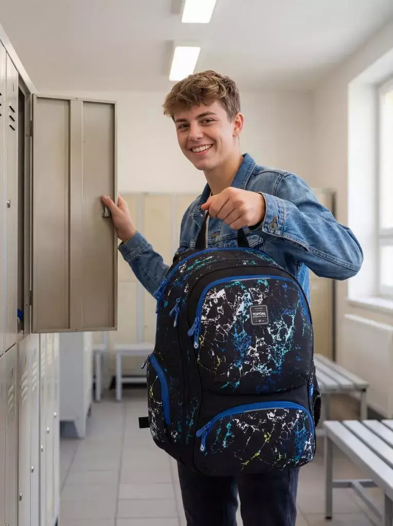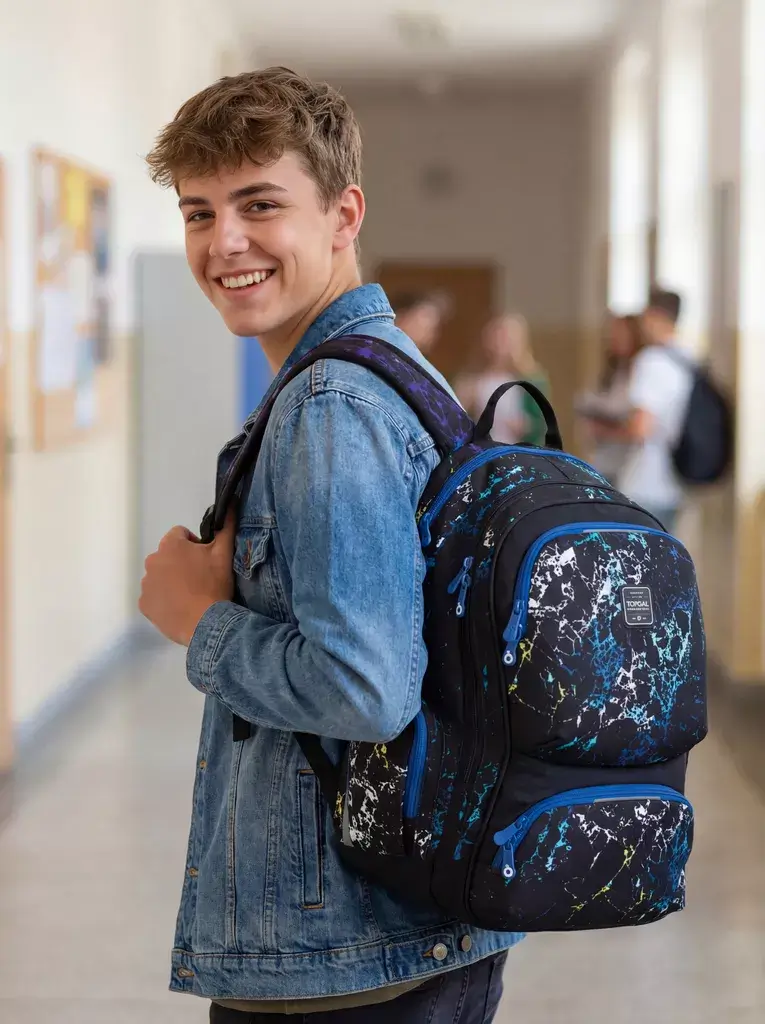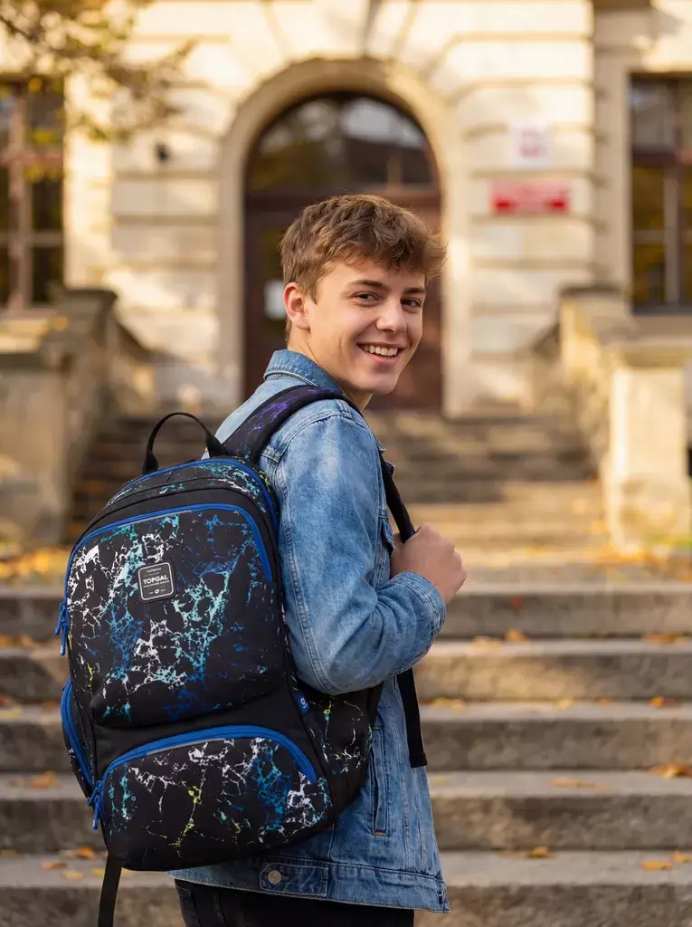 Dvoukomorový studentský batoh Topgal ROTH 25040 s vintage vzorem se stylovou nášivkou. Záda batohu jsou polstrovaná a anatomicky tvarovaná z měkké pěny. Uvnitř zadní komory je polstrovaná kapsa na notebook i tablet.