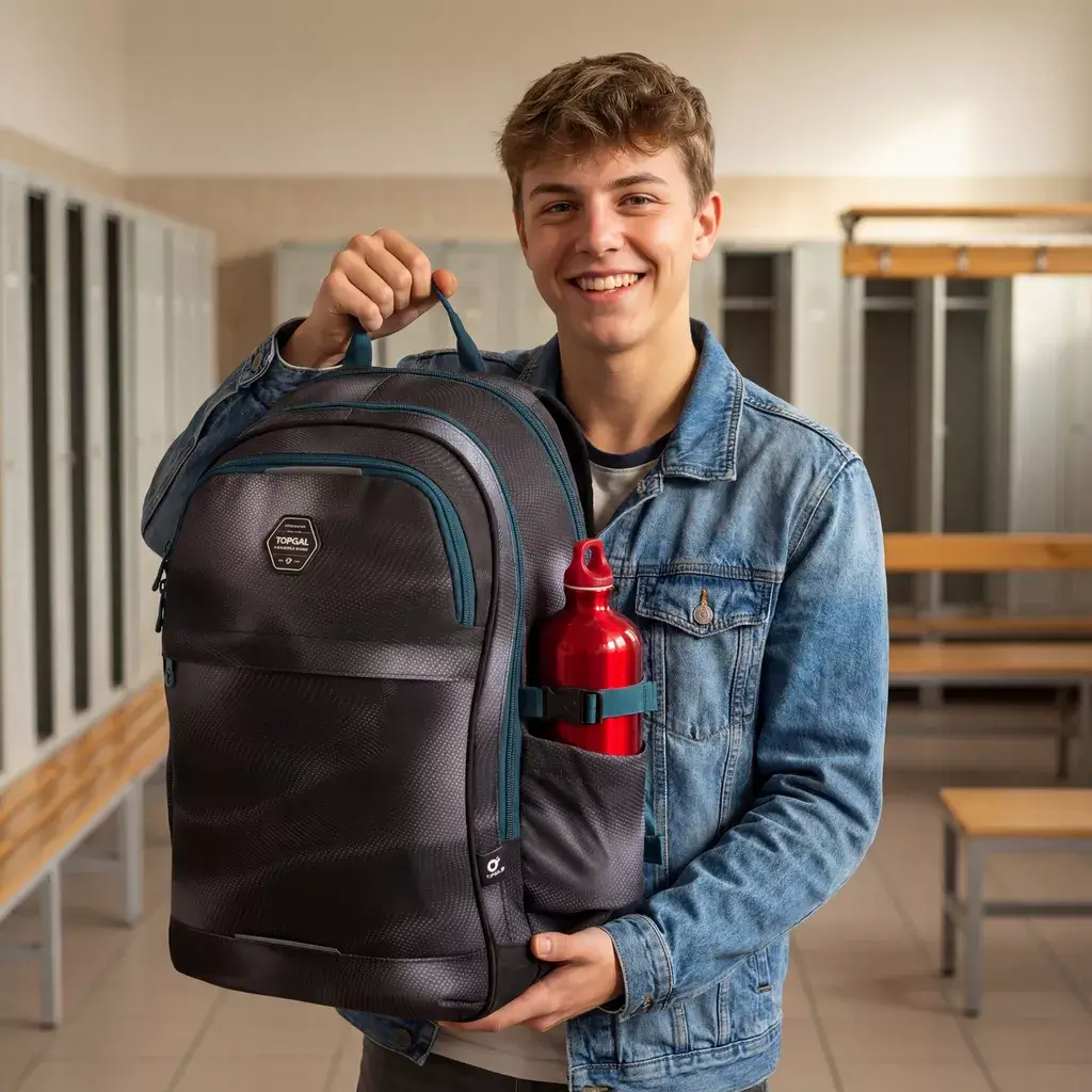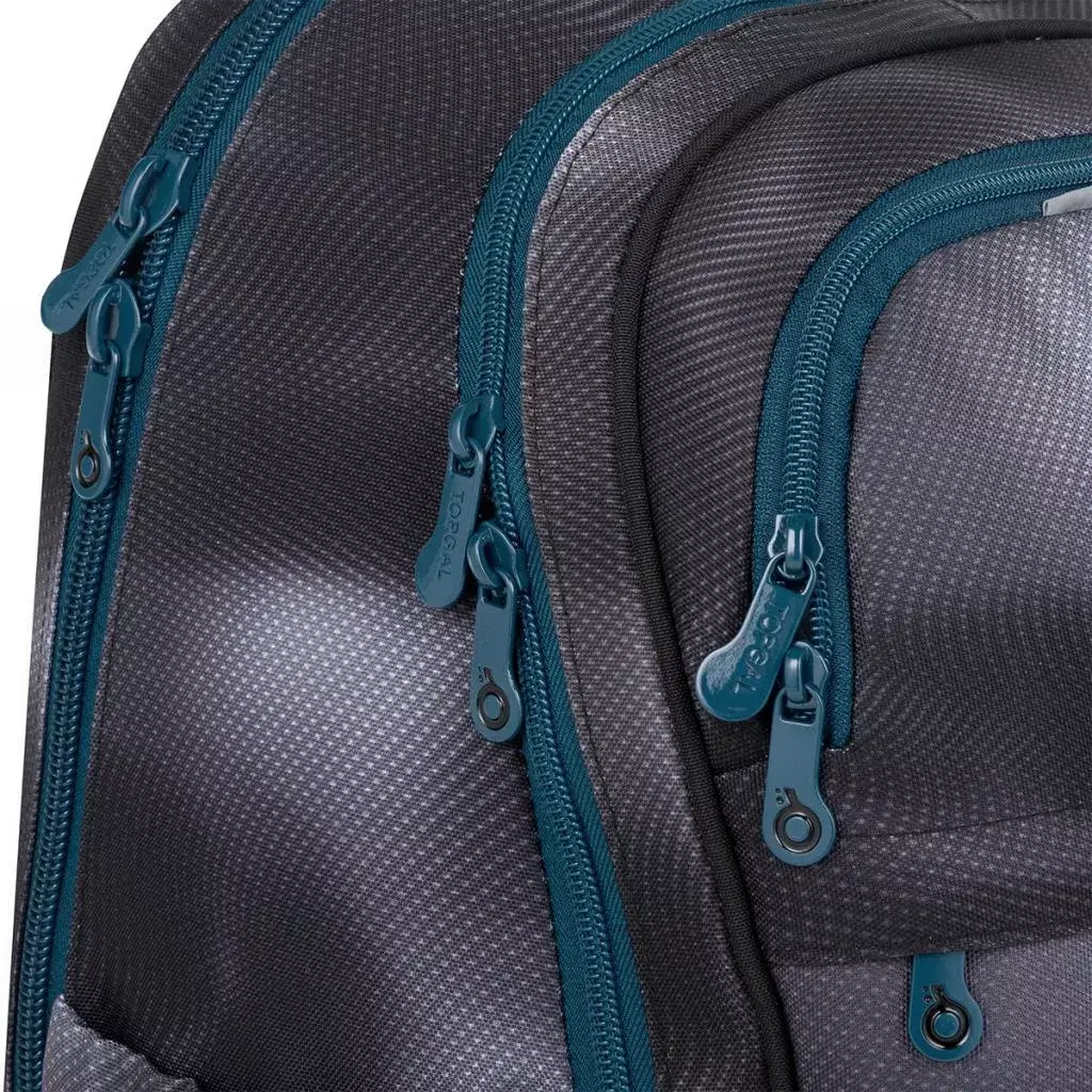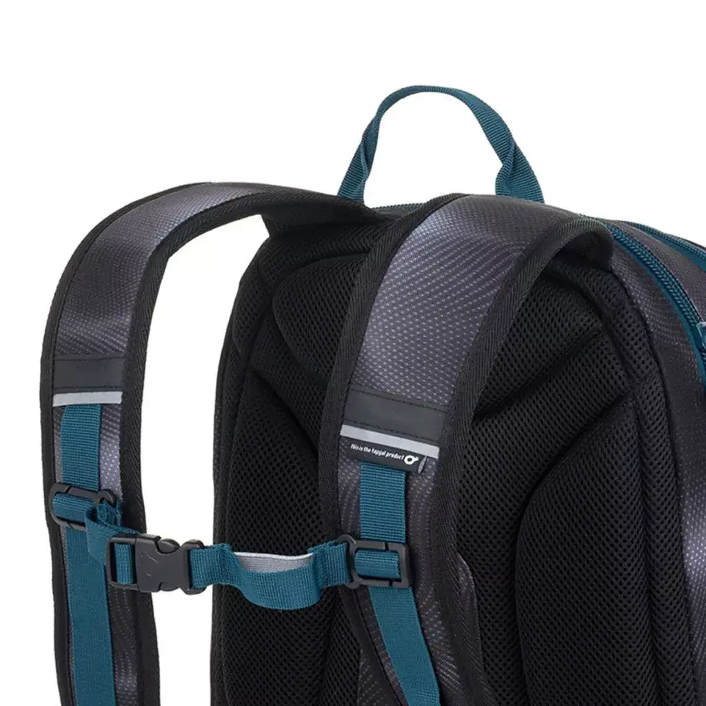 Objemný dvoukomorový studentský batoh Topgal RUBI 25034 v temně modré barvě s modrým žíháním je ideální volbou pro 2. stupeň ZŠ a SŠ. Záda batohu jsou polstrovaná, anatomicky tvarovaná a pevná díky lehké hliníkové výztuze. Uvnitř zadní komory je umístěna polstrovaná kapsa na notebook/tablet a druhá menší na mobil či powerbanku.