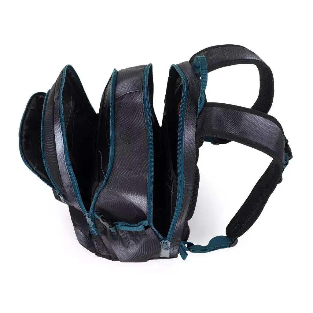 Kromě dvou komor má batoh dvě přední kapsy, do kterých se krásně vejde pouzdro. Uvnitř jedné z komor najdete síťovanou kapsu na doklady a karabinu na klíče. Reflexní prvky nenarušují finální vzhled batohu. Postranní kapsy na lahev s pitím jsou vyrobeny ze stejného materiálu jako batoh, perfektně udrží 1,5 litrovou láhev.